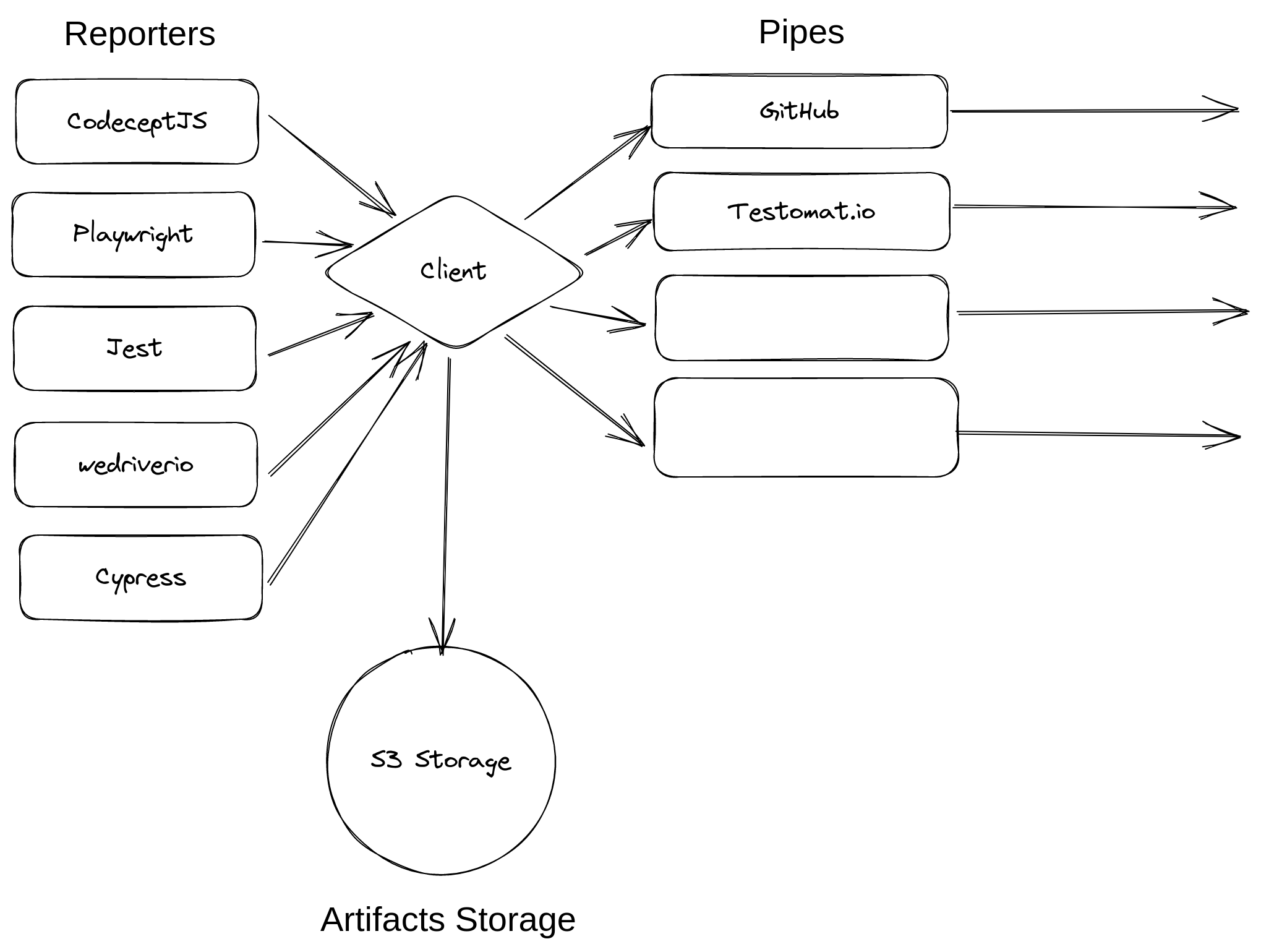 Unlike other reporters, Testomat.io Reporter doesn’t force you to report data only to Testomat.io application. Testomat.io Reporter collects data from test frameworks and submits it via pipes to other services.